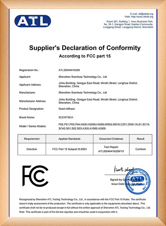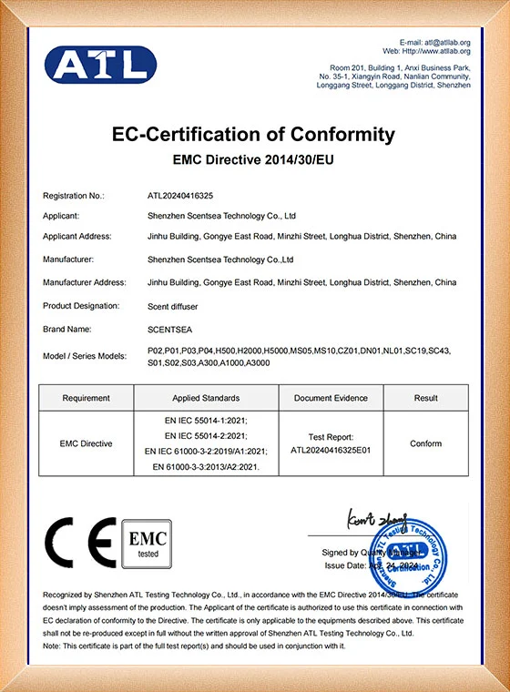 SCENTSEA의 모든 향수 디퓨저는 CE, ROHS, FCC 및 SGS 인증을 받았습니다. 지금까지 SCENTSEA의 향기 기계는 70개 이상의 국가에 설치되었으며 고객으로부터 널리 호평을 받았습니다.